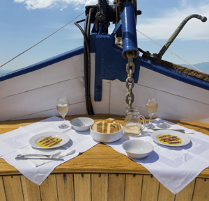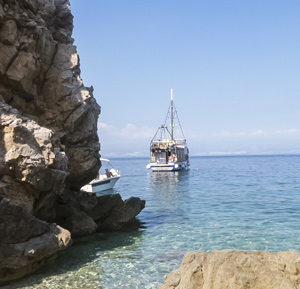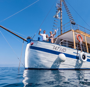Neugierig? Ausfahrt in die schönsten Buchten der Insel Cres. Da müssen Sie nicht in die Karibik, sondern nur auf die Tornado Blue!! Ca. 1 ½ Stunden fahren Sie mit der Tornado Blue, Sonnenliegen, schattige Plätzchen, Getränke, bis in einer einsamen Bucht geankert wird. Über die Leiter am Schiff geht’s ins Meer, Sie schwimmen ans Ufer, sehen bis auf den Grund hinunter, kristallklares türkises Wasser. In der Bucht bereitet Ihnen Liliana eine kleine Überraschung. Nach einem ausgiebigen Badeaufenthalt in der Bucht, geht es zurück an Bord, wo zwischenzeitlich Kapitän Roni ein 3-gängiges Fischmittagessen zubereitet hat – eine kalte Vorspeise, frischer gegrillter Fisch, Gemüse und Salat aus dem eigenen Garten und eine süße Überraschung erwarten Sie auf der Rückfahrt.